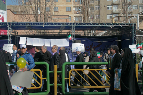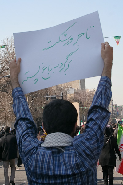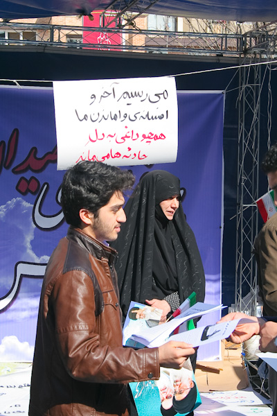 اما یکی از ابتکارات جوانان دانشجو در حاشیه راهپیمایی بیست و دوم بهمن موجب شده بود تا فرصت مناسبی برای برای بیان نظرات و خواستههای مردم در اختیار راهپیمایان قرار گیرد و شعارها و نوشته های جالب توجهی خلق شود. قرارگاه شهید باقری بسیج دانشجویی در حاشیه راهپیمایی غرفهای برای پلاکارد نویسی مردمی راه اندازی کرده بود تا مردم بتوانند آن طور که دوست دارند صدای خود را به گوش جهانیان برسانند.