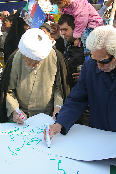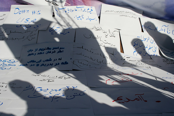 شاید مشاهده تصاویر دست نوشته های مردمی از هر توضیح و حاشیه ای گویاتر باشد. نگاهی به این پیامها و پلاکاردهای ساده مردمی میتواند عمق خواستهها، اعتقادات و آرمانهای یک ملت پویا و با نشاط را نشان دهد.